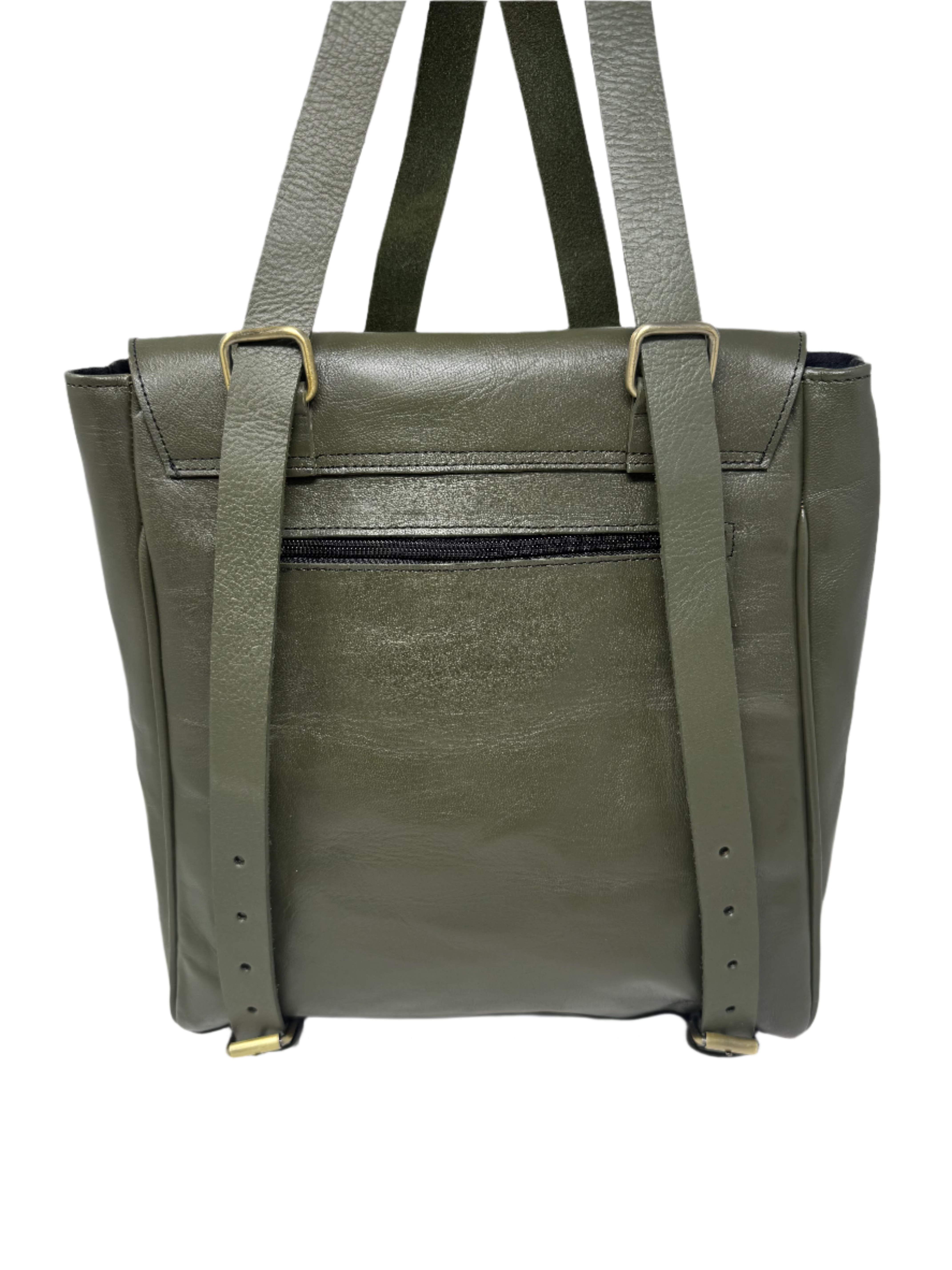 Cleo – olive green Convertible Leather Backpack | 2-in-1 Handcrafted Bag