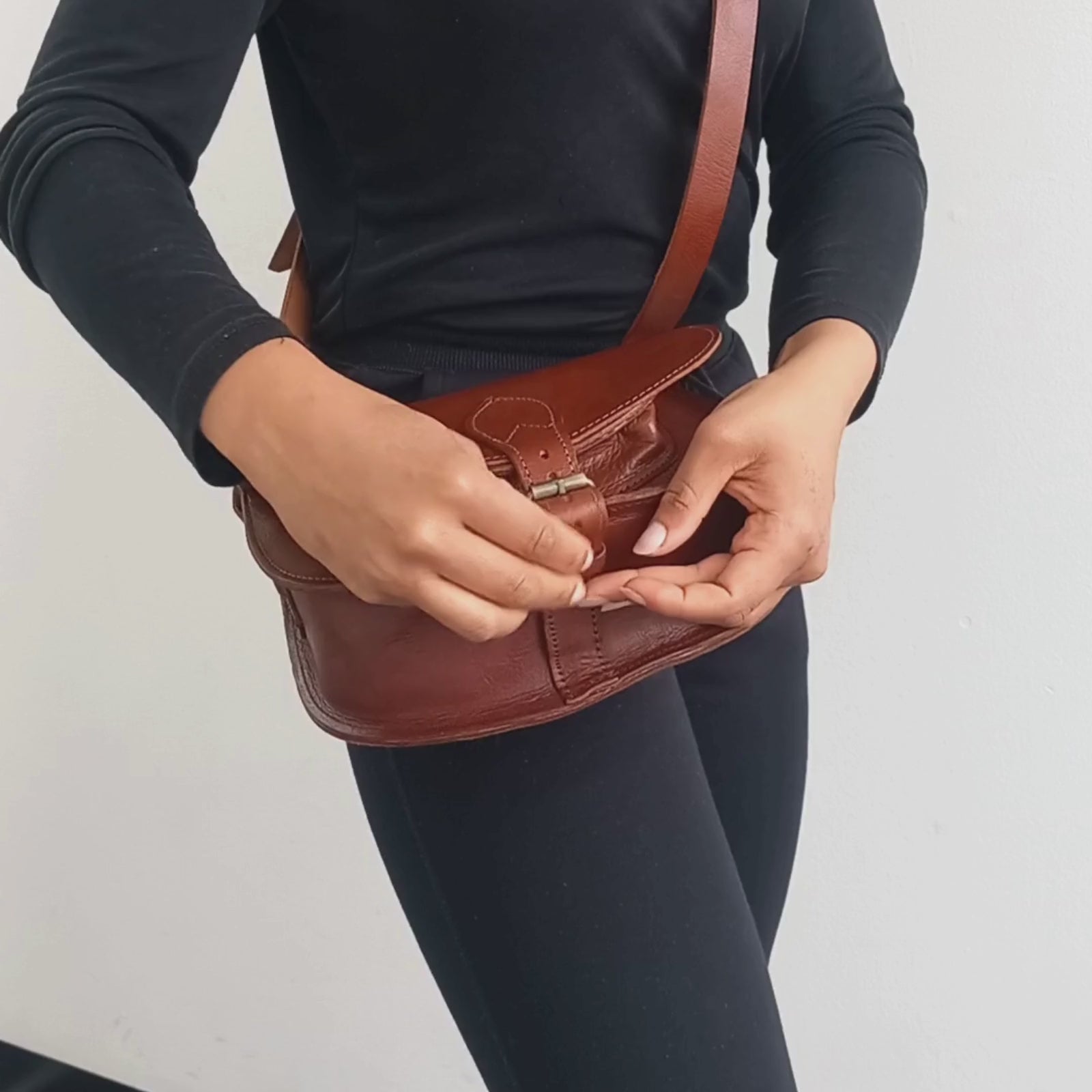 Our saddle bag is designed with a spacious main compartment and a separate pocket under the flap, all secured with a buckle closure and a long adjustable straps for the perfect fit.